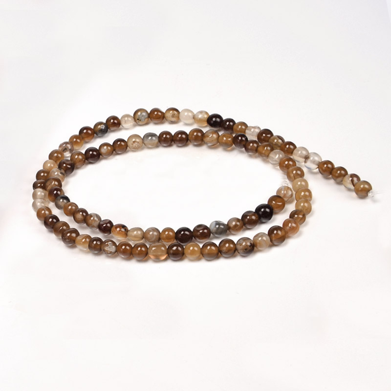 Бусины Агат коричневый, Натур. камень, 4 мм, Круглые (BUS-053936) / 1 низка