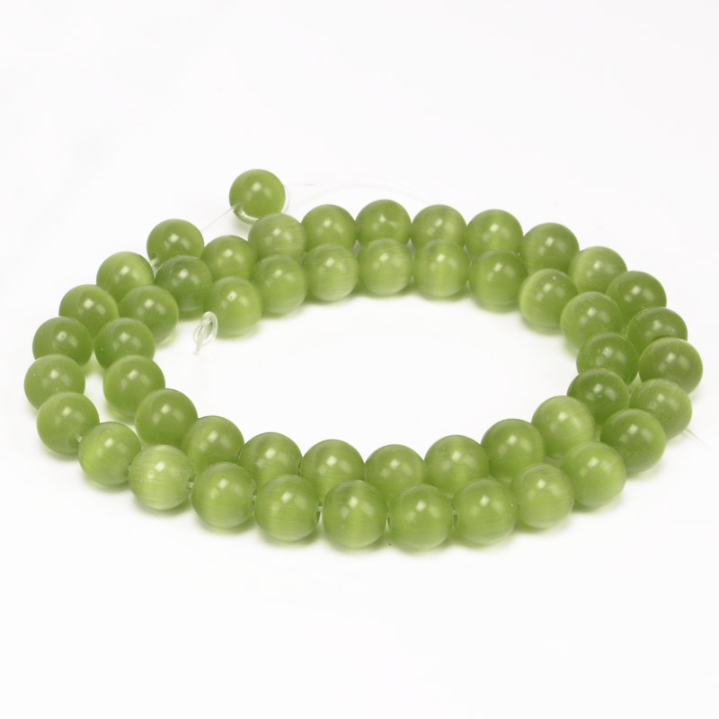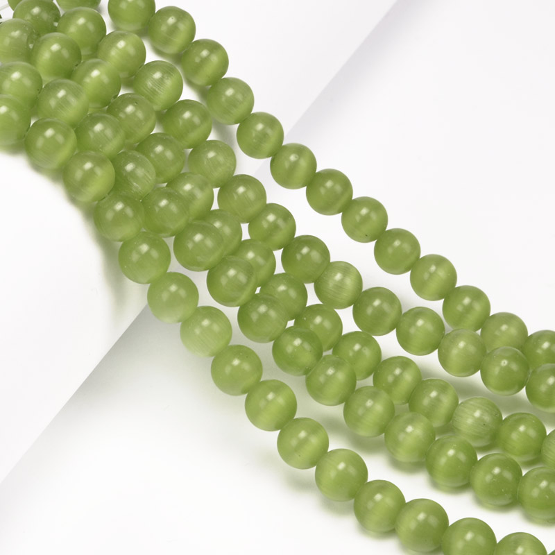 Бусины Кошачий глаз, Синт. камень, 8 мм, Оливковые, Круглые (BUS-054216) / 1 низка