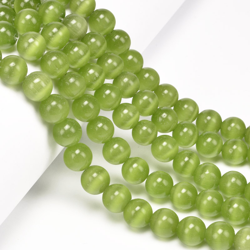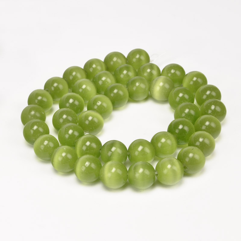 Бусины Кошачий глаз, Синт. камень, 10 мм, Оливковые, Круглые (BUS-054217) / 1 низка