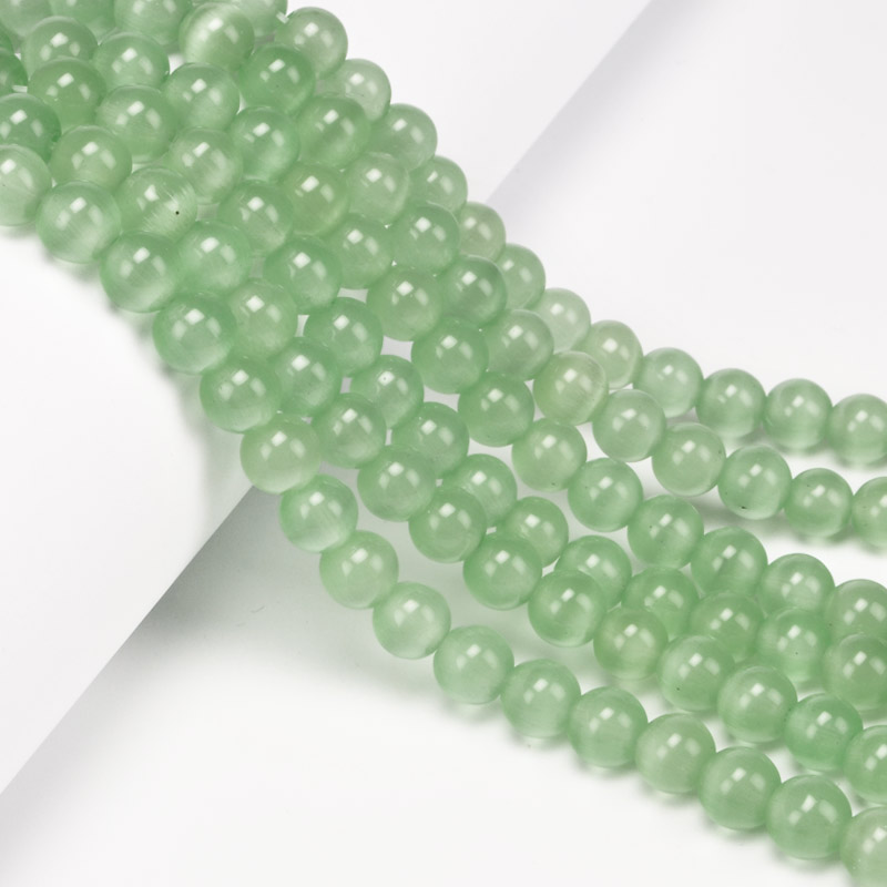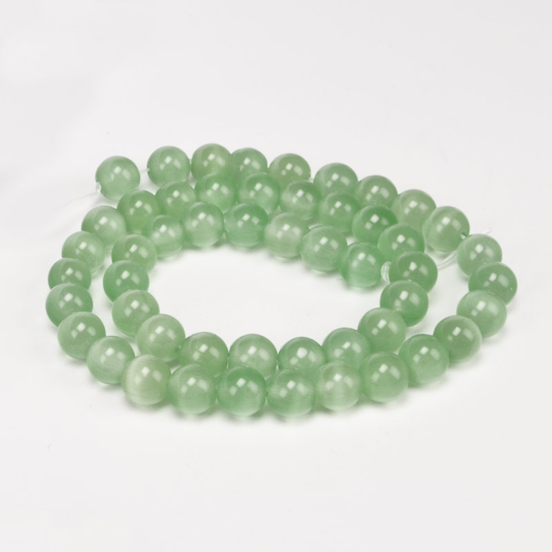 Бусины Кошачий глаз, Синт. камень, 8 мм, Салатовые, Круглые (BUS-054220) / 1 низка