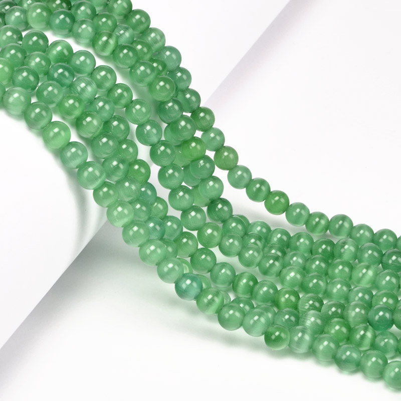 Бусины Кошачий глаз, Синт. камень, 6 мм, Зеленые, Круглые (BUS-054251) / 1 низка