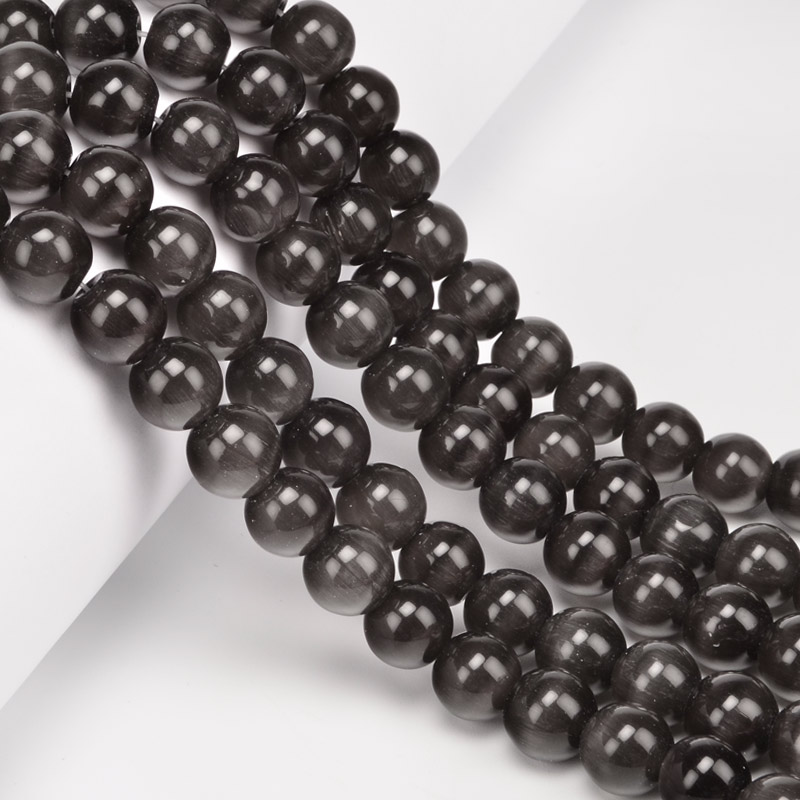 Бусины Кошачий глаз, Синт. камень, 10 мм, Серые, Круглые (BUS-054260) / 1 низка