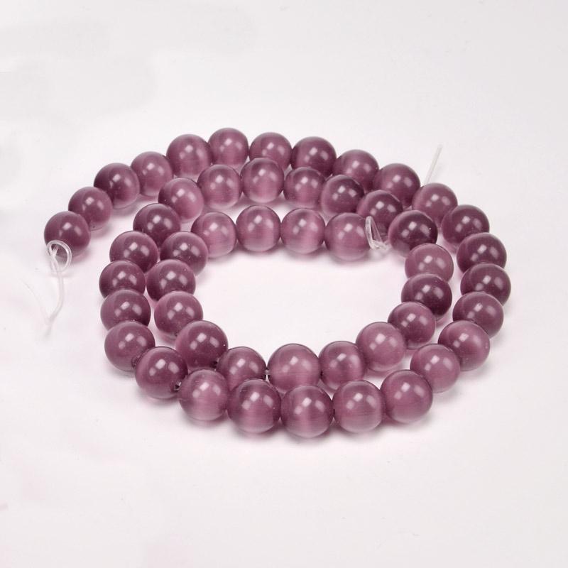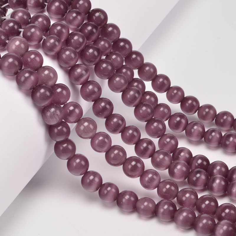 Бусины Кошачий глаз, Синт. камень, 8 мм, Сиреневые, Круглые (BUS-054283) / 1 низка