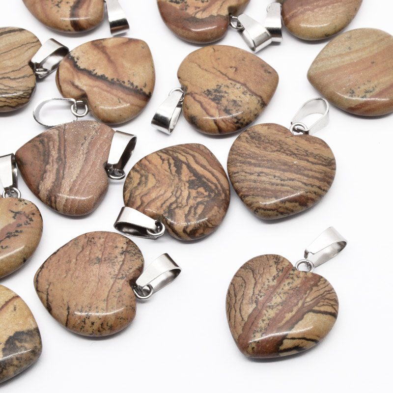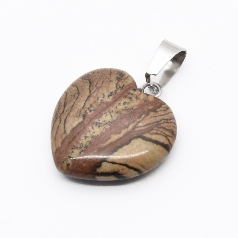 Подвеска Сердце, Натур. камень Яшма пейзажная, 20х20 мм (POD-054330) / 1 шт