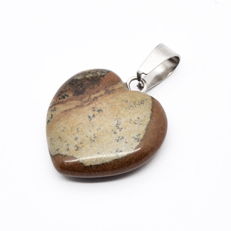 Подвеска Сердце, Натур. камень Яшма пейзажная, 20х20 мм (POD-054331) / 1 шт