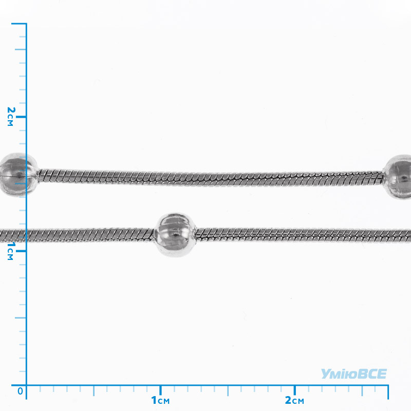 Толщина цепочки 1,3 мм, расстояние между шариками 3 см.