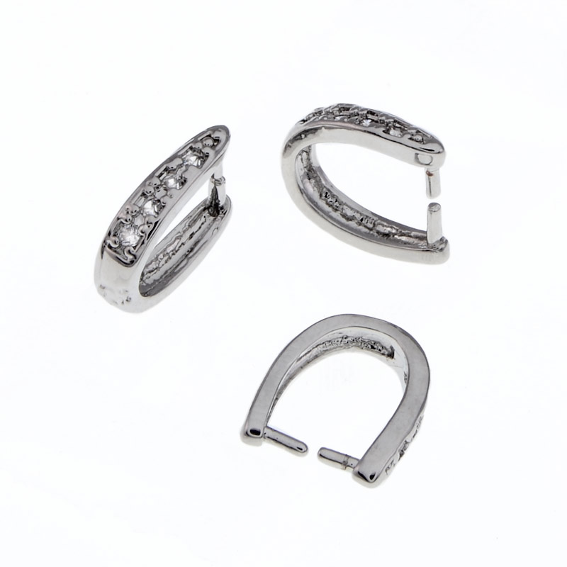 Держатель для кулона, 11х9 мм, Латунь с покрытием Родий, Стразы куб. цирконий (OSN-055662) / 1 шт