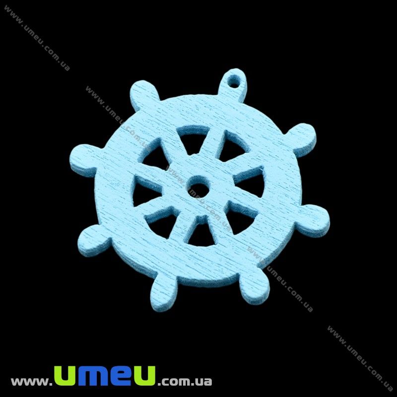 Подвеска деревянная Штурвал, Голубая, 25х25 мм (POD-000557) / 1 шт