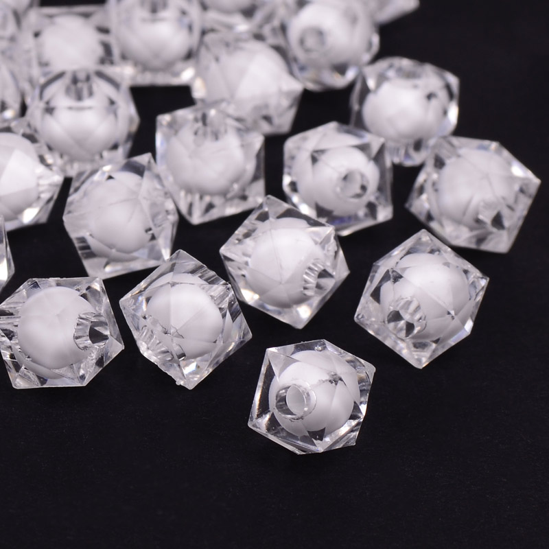 Бусины для сумок ОПТ Акриловые, Куб граненый, 12х11 мм, Белые (BUS-056155) / 1 уп (500 г)