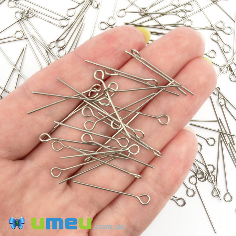 Булавки из нерж. стали, 25 мм, Темное серебро (STL-056218) / 1 уп (20 шт)