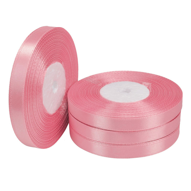 Атласная лента, 10 мм, Розовая (LEN-057036) / 1 моток (22 м)