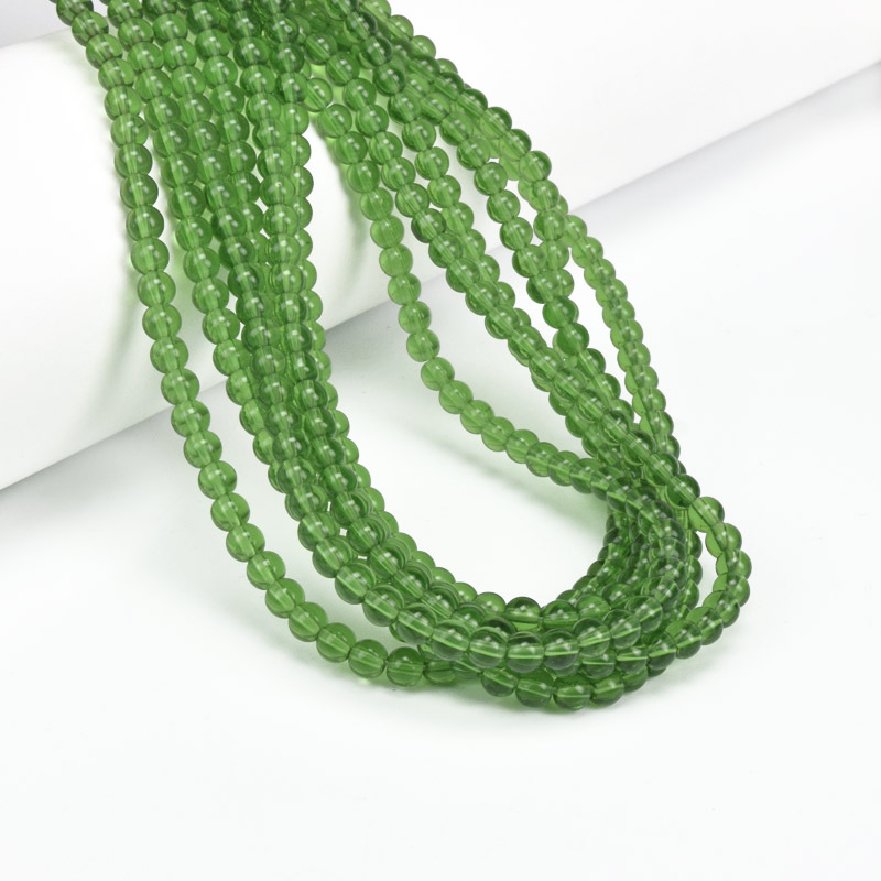 Бусины стеклянные прозрачные, 4,5 мм, Круглые, Зеленые (BUS-057241) / 1 низка