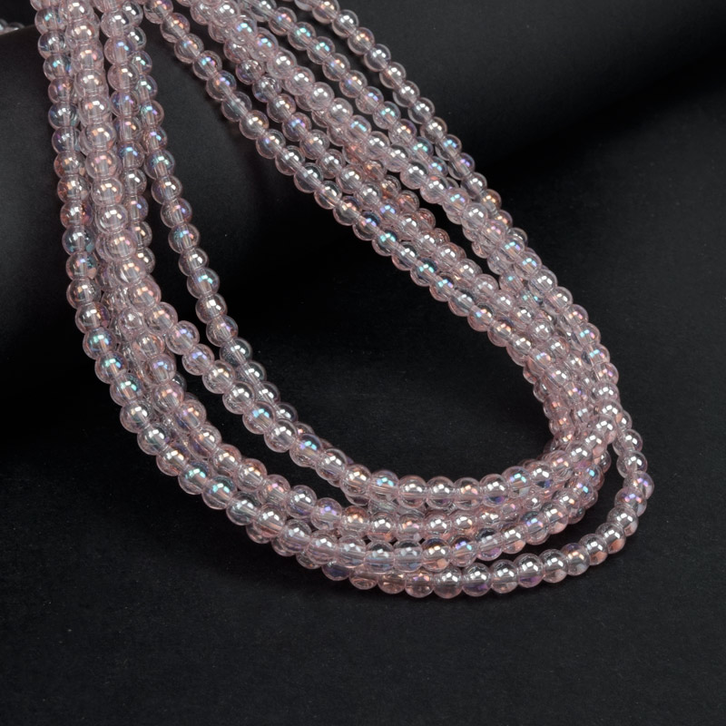 Бусины стеклянные прозрачные, 4,5 мм, Круглые, Розовые АВ (BUS-057248) / 1 низка