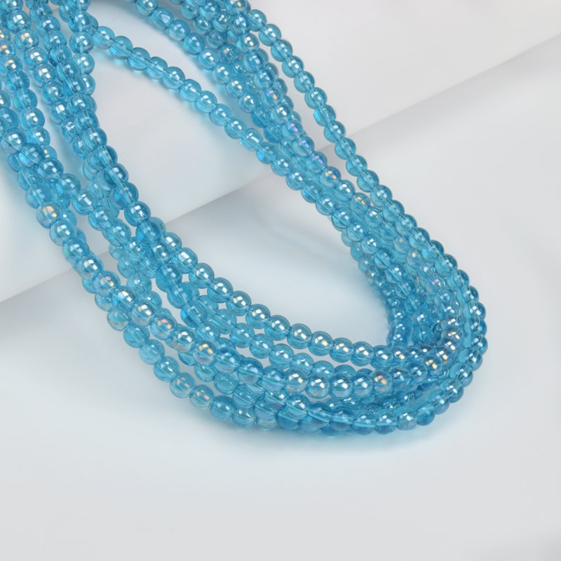 Бусины стеклянные прозрачные, 4,5 мм, Круглые, Голубые АВ (BUS-057249) / 1 низка