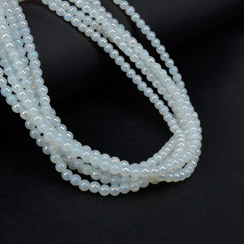 Бусины стеклянные, 4,5 мм, Круглые, Полупрозрачные АВ (BUS-057259) / 1 низка