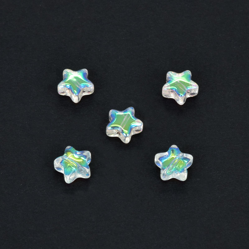 Бусины стеклянные, Звезда, 8х4 мм, Прозрачные АВ (BUS-057513) / 1 уп (5 шт)
