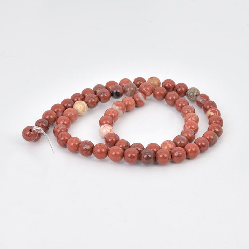 Бусины Яшма красная, Натур. камень, 6,5 мм, Круглые (BUS-058010) / 1 низка