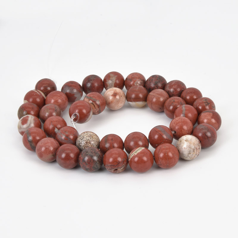 Бусины Яшма красная, Натур. камень, 10 мм, Круглые (BUS-058012) / 1 низка