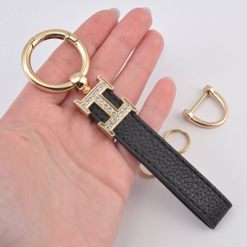 Брелок, 13х3 см, Черный, Натуральная кожа, Золото (OSN-058501) / 1 шт
