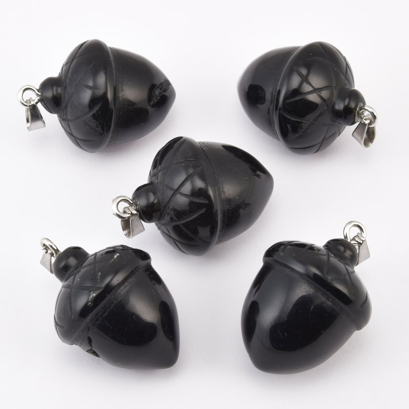 Подвеска Желудь, Натур. камень Обсидиан черный, 25х19 мм (POD-058594) / 1 шт