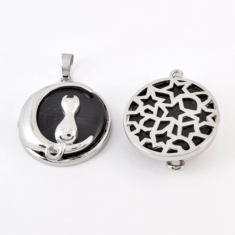Подвеска Котик на луне, Натур. камень Агат черный, 33х28 мм (POD-058603) / 1 шт