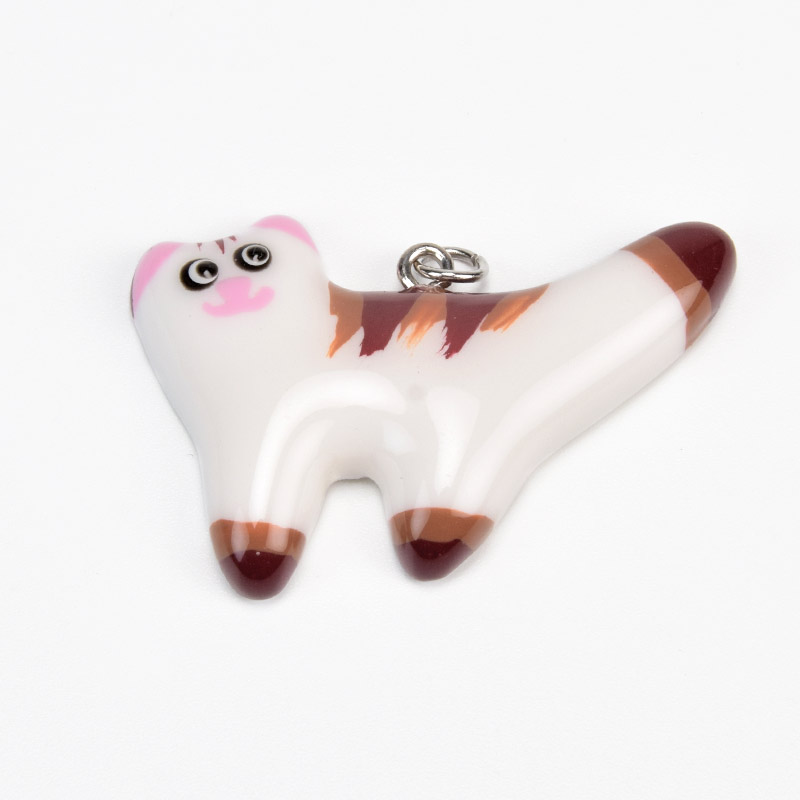 Подвеска Котик из полимерной глины, 40х27 мм, Бело-коричневый (POD-059380) / 1 шт