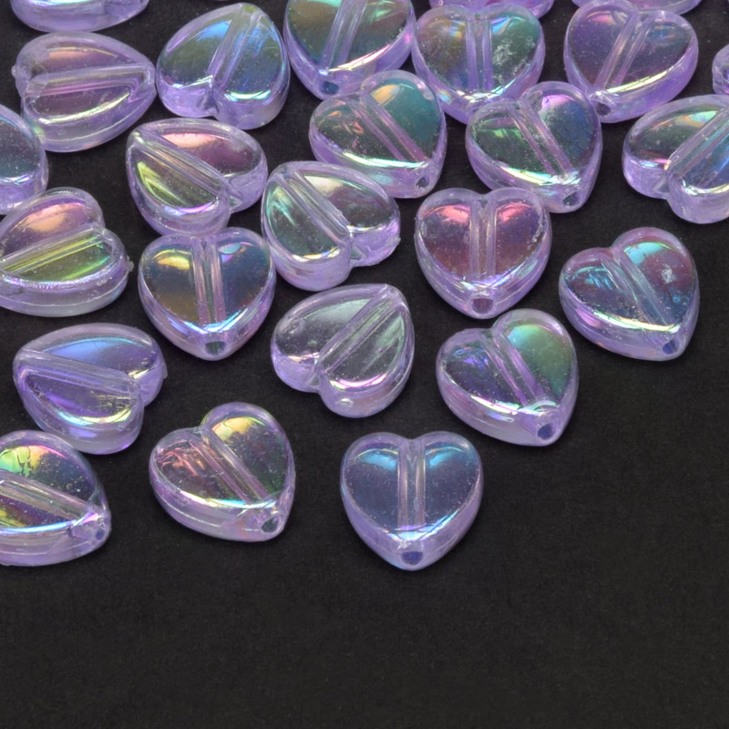 Бусины акриловые Сердце, 8,5х8,5 мм, Сиреневые АВ (BUS-059817) / 1 уп (5 г)