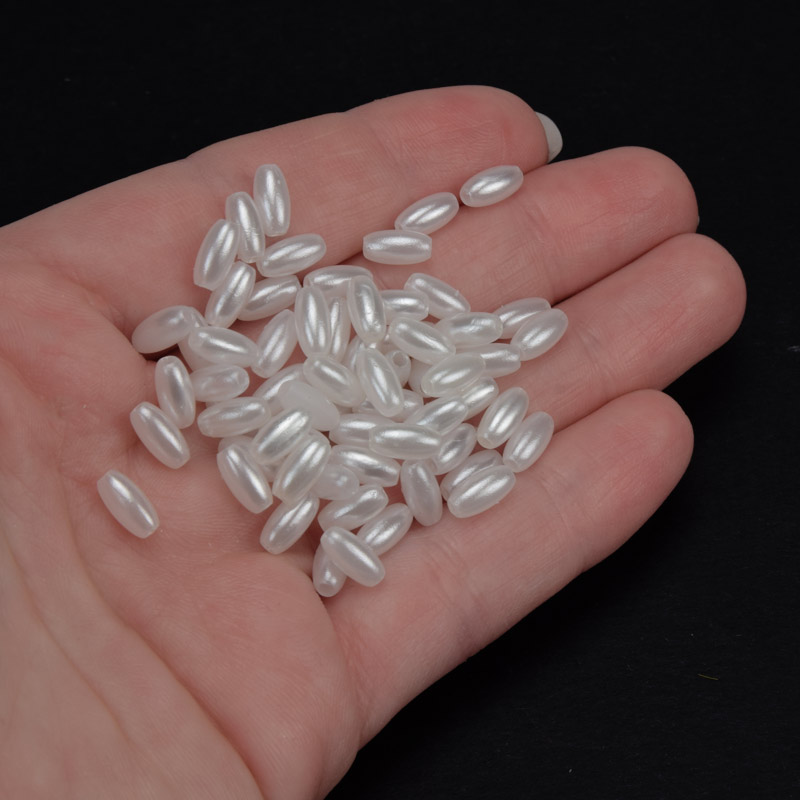 Бусины пластиковые Рис Жемчуг, 8х4 мм, Белые (BUS-059864) / 1 уп (5 г)