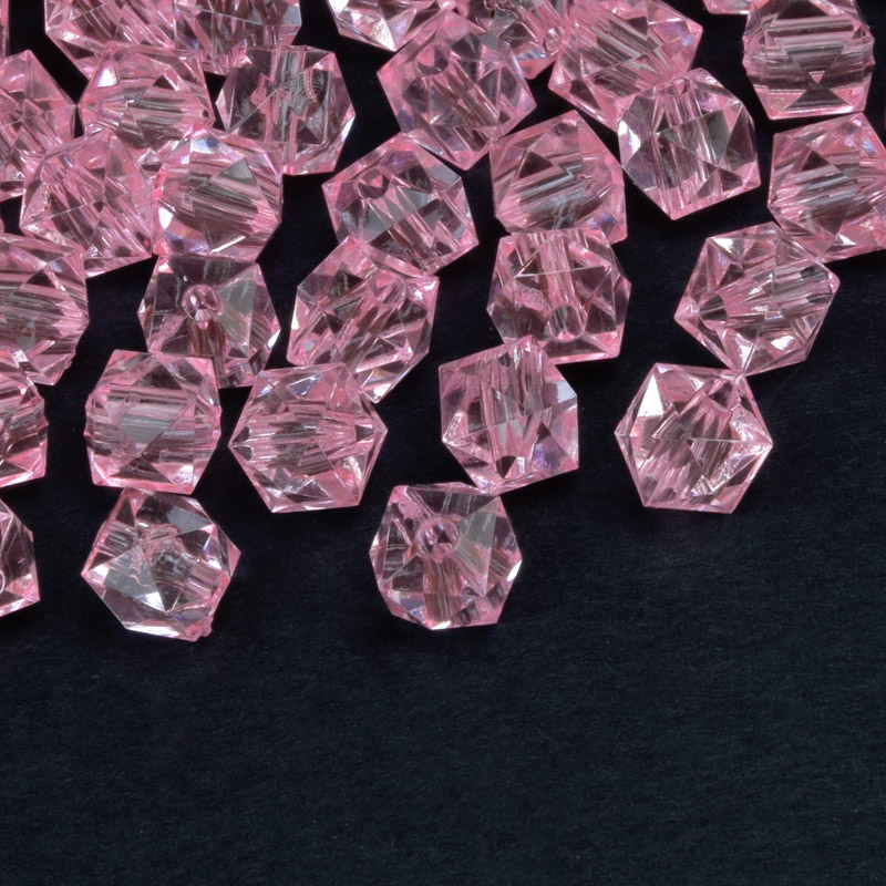 Бусины для сумок ОПТ Акриловые, Куб граненый, 8х7,5 мм, Розовые (BUS-059926) / 1 уп (450 г)