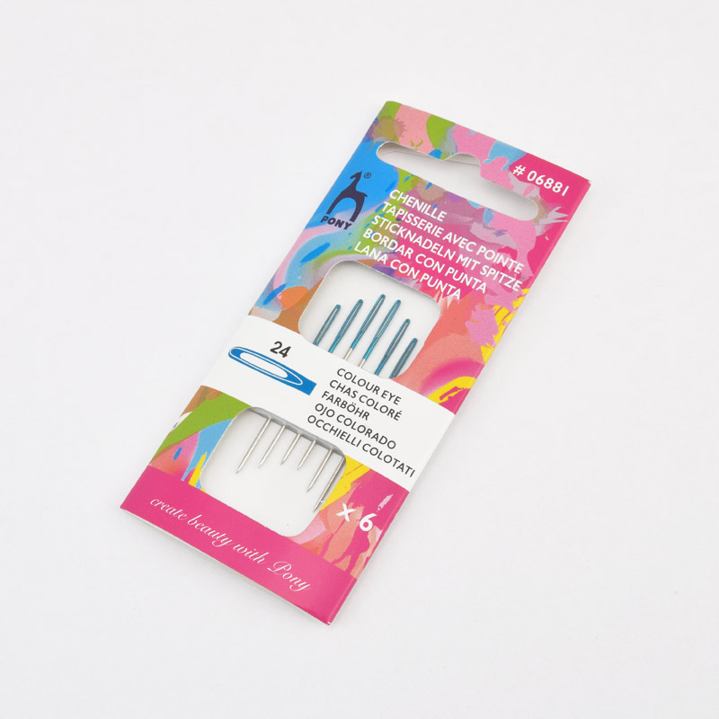 Набор вышивальных иголок (шенил) №24 PONY с цветным ушком, 6 шт (UPK-060061) / 1 набор