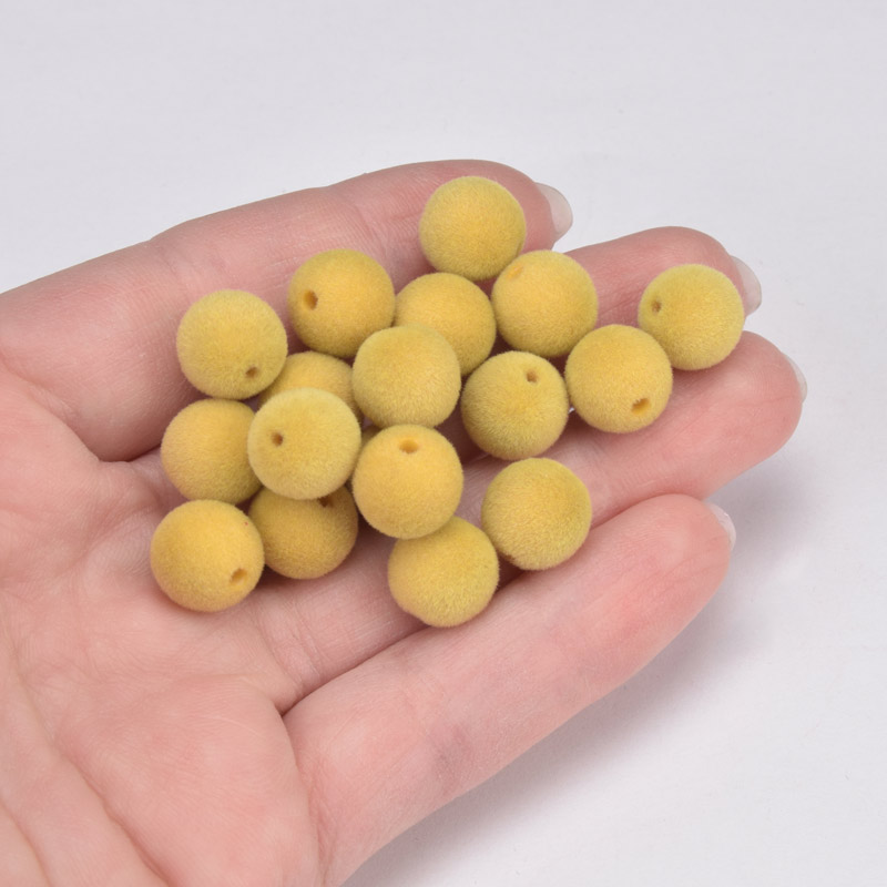Бусина бархатная, Круглая, 10 мм, Горчичная (BUS-060188) / 1 шт
