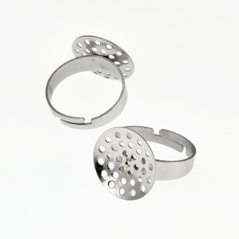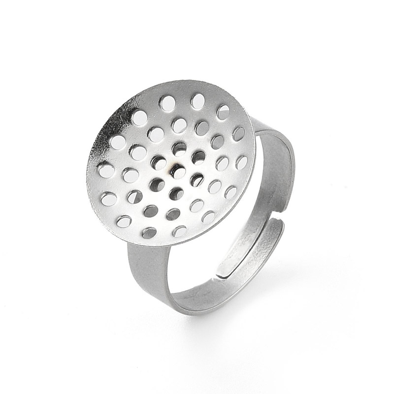 Кольцо из нерж. стали с ситечком 16 мм, Темное серебро (OSN-060522) / 1 шт