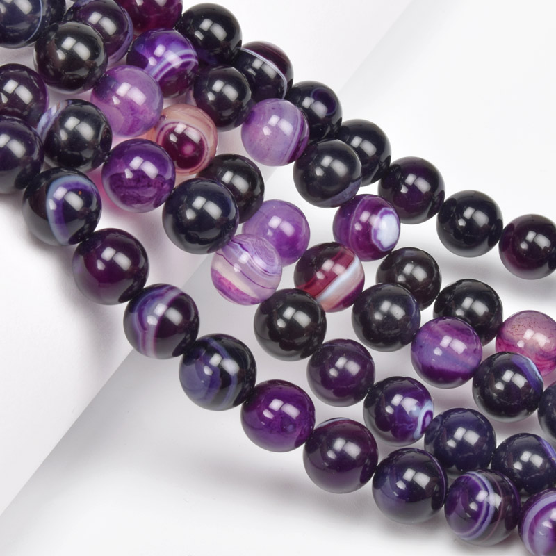 Бусины Агат фиолетовый, Натур. камень, 10 мм, Круглые, 19 см (BUS-060717) / 1 низка