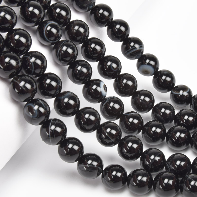 Бусины Агат черный, Натур. камень, 10 мм, Круглые, 19 см (BUS-060719) / 1 низка
