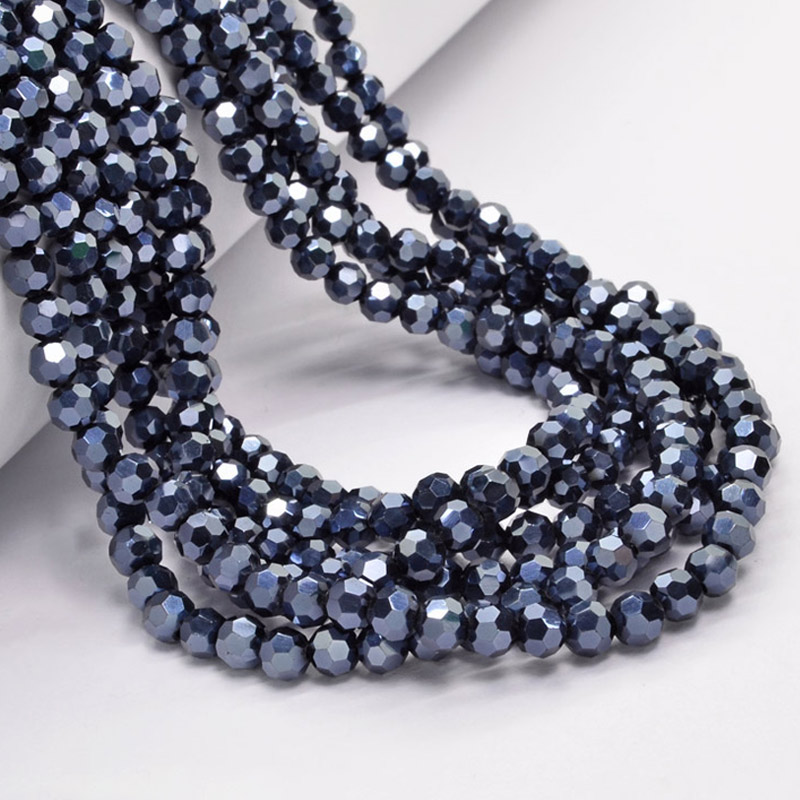 Бусины круглые граненые, 6 мм, Черные (Мокрый асфальт) (BUS-060918) / 1 низка