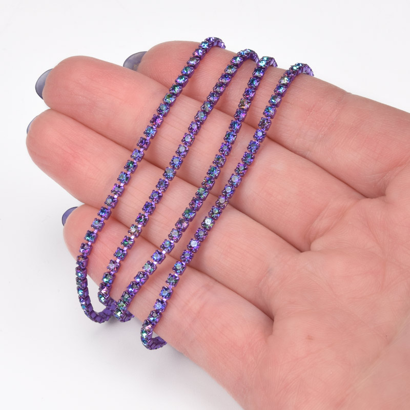 Стразовая цепь SS6 - 2,0 мм, Фиолетовая ирис, Стразы стеклянные фиолетовые АВ (ZEP-061019) / 1 м