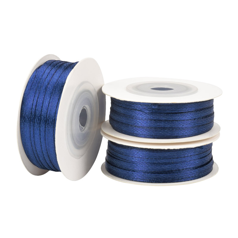Атласная лента двухсторонняя, 3 мм, Синяя темная (LEN-061046) /
