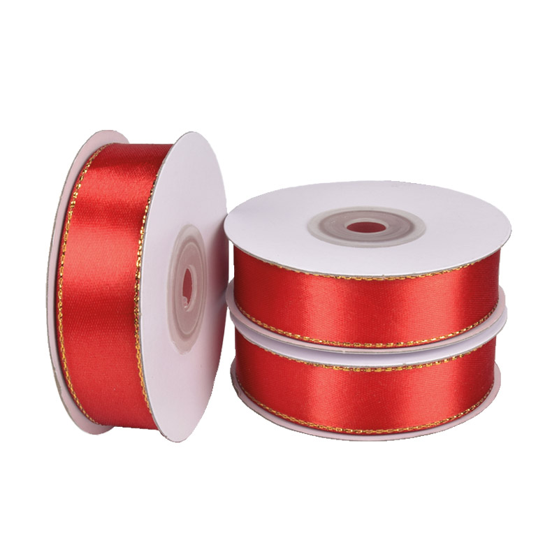 Атласная лента с люрексом, 20 мм, Красная с золотом (LEN-061076) / 1 моток (22 м)