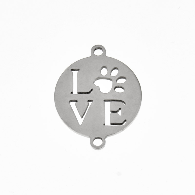 Коннектор из нерж. стали Love и лапка, 20х16 мм, Темное серебро (STL-061409) / 1 шт