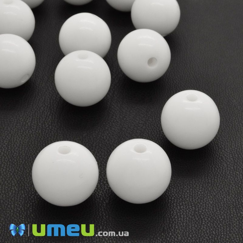 Бусины пластиковые Круглые, 18 мм, Белые (BUS-000687) /