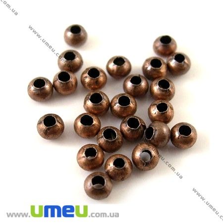 Бусина мет. круглая, 3,2 мм, Медь (BUS-007469) / 1 уп (50 шт)