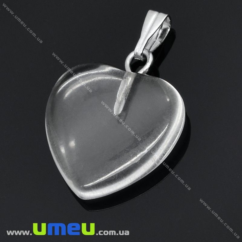 Подвеска Сердце из натурального камня, Кварц прозрачный, 25х18 мм (POD-009262) / 1 шт