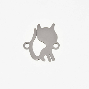 Коннектор из нерж. стали Котик, 15,5х13,5 мм, Темное серебро (STL-061402)